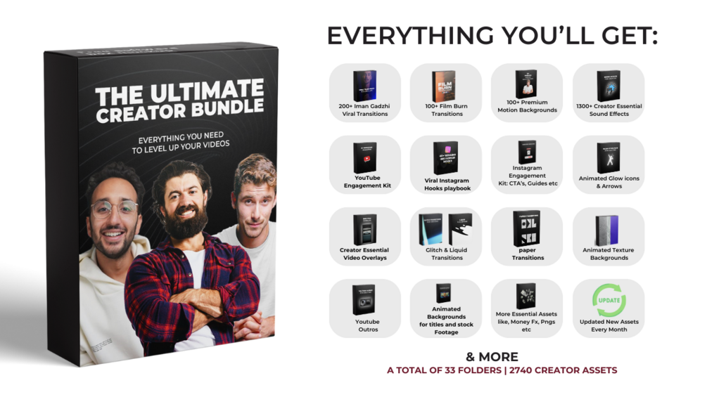 The Ultimate Creator Bundle is your all-in-one solution to create high-quality, eye-catching content that makes you stand out and hooks your audience within seconds, whether you’re a beginner or already crushing it with millions of followers.